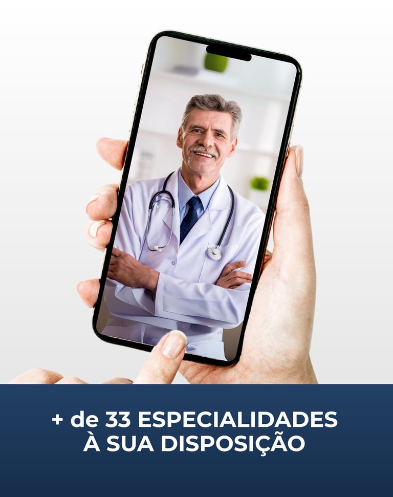 Com nosso serviço, você pode realizar consultas de rotina, prevenção, manutenção da saúde e tratamentos de forma mais confortável, segura e econômica, contando com 33 especialidades médicas à sua disposição.